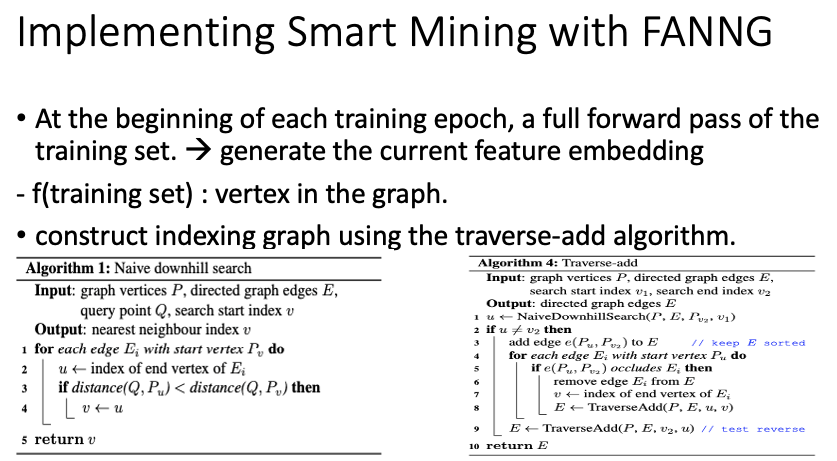각 training epoch 시작에 training set를 전부 network에 통과시켜 feature embedding space를 구성한다. training set의 feature들이 graph의 vertex가 된다. 그 후 traverse-add algorithm을 사용해 graph index를 만든다. 각각의 vertex에서 outbound edge가 un-occluded neighbor에 연결한다.