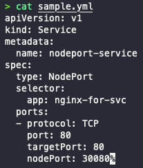 spec.ports.tragetPort: 서비스가 접근할 Pod의 Port (기본 : port랑 동일)