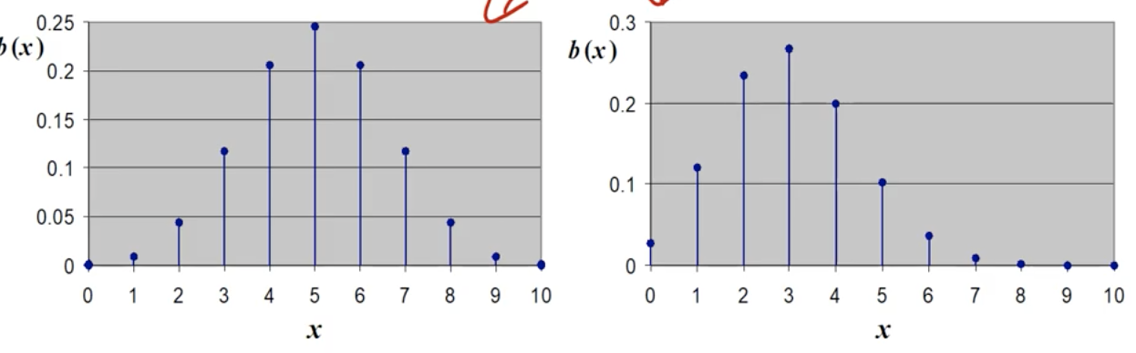 - 분포는 parameters n 과 p 에 의해 모양이 결정된다.