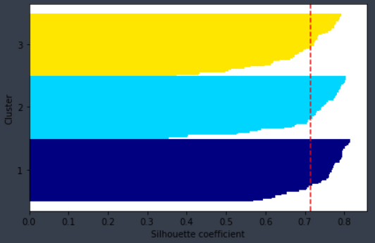 - -1 <= si <= 1 : 1에 가까울수록 군집화가 잘된 것이다.