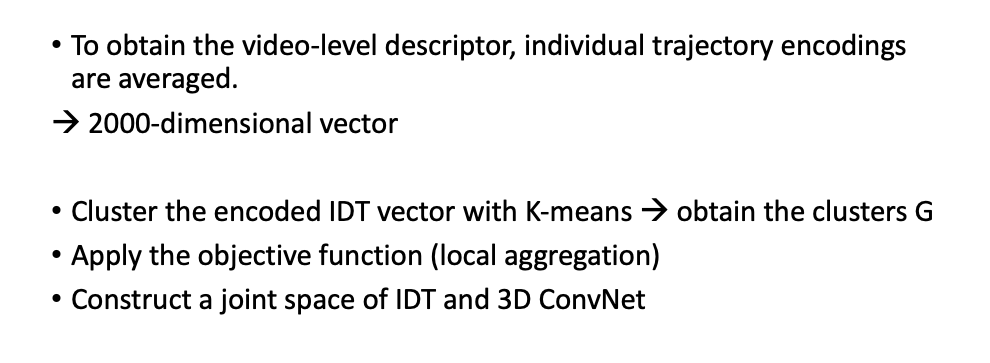 3D ConvNet의 다소 부족한 feature extraction 능력을 보완하기 위해 "Action Recognition with Improved Trajectories" 논문에 나온 IDT (Improved Dense Trajectory)를 그대로 적용하였다.