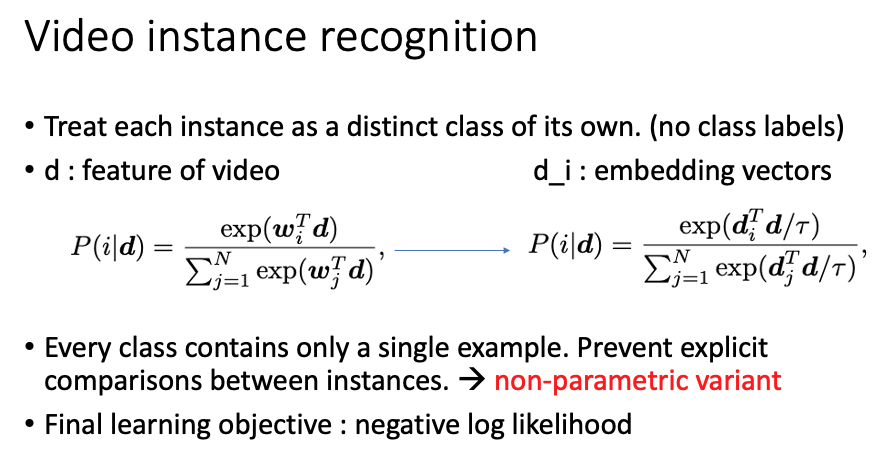해당 논문은 크게 세 부분으로 나뉘어 있다. video instance recognition, video local aggregation, IDT이다.