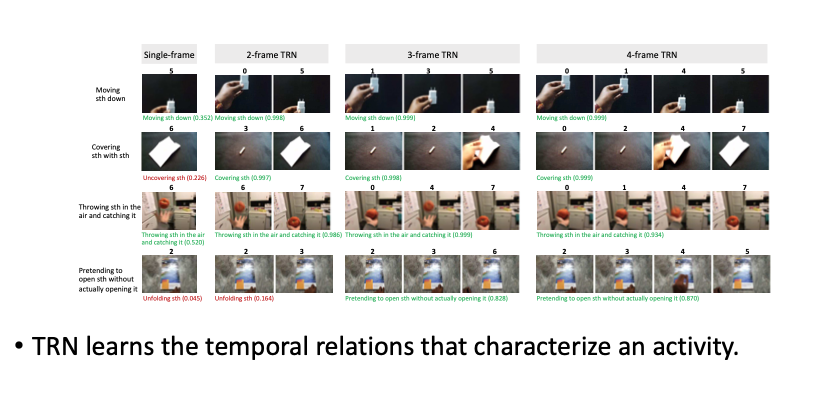 temporal relational reasoning은 사람이 이전, 현재 상태와의 관계 추론을 통해 행동을 인지하거나 미래를 예측하는 것을 의미한다.