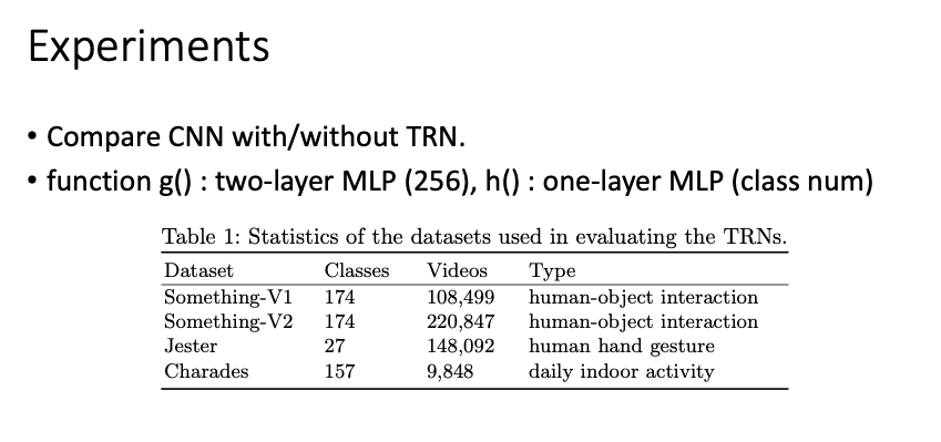 TRN은 비디오 프레임으로부터 시간적 관계를 추론하는 것이 목적인 네트워크 구조이다. module 방식이어서 network에 삽입하는 방식으로 적용이 가능하다.
